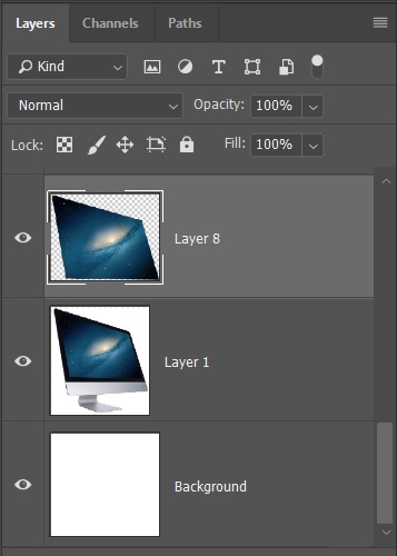 We beginnen met een witte achtergrond, en daarboven een layer met de monitor.
