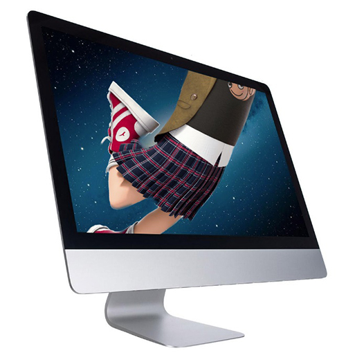 Kies de layer met het meisje boven het uitgeknipte scherm, druk rechtermuisknop en kies CREATE CLIPPING MASK.