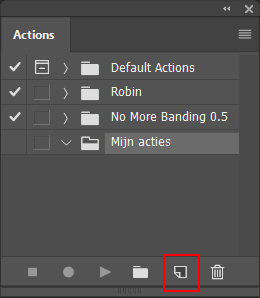 Onderaan het actiepaneel zal je nu een rode RECORD knop te zien krijgen. Vanaf nu ga je alle stappen ondernemen voor het opslaan van een JPG met een kwaliteit van 85%.