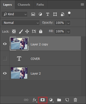 Druk in het LAYERS-paneel op het masker icoontje.