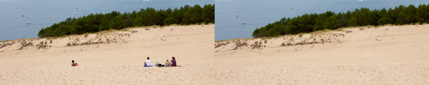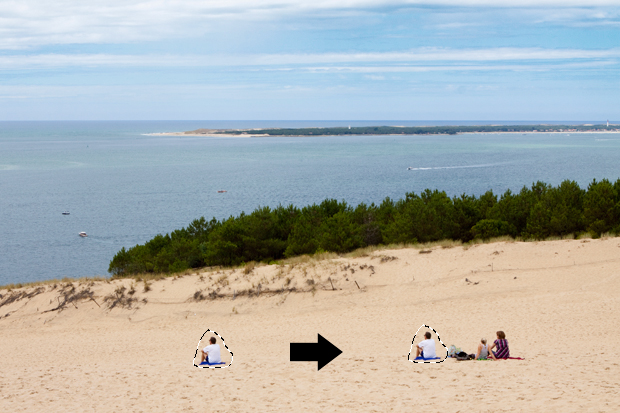 Selecteer hetzelfde stukje opnieuw maar versleep het vlak nu naar een deel van het strand waar niemand aanwezig is. Laat los, en zie dat de persoon verdwenen is!